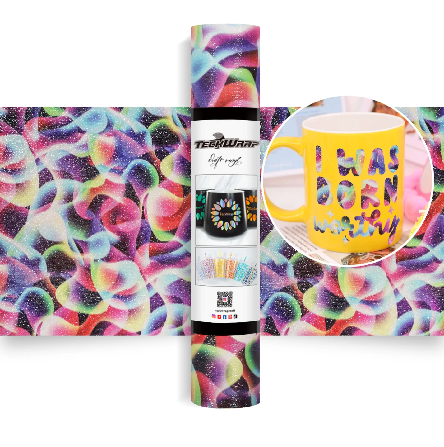 Special Characteristic: Our Glitter Brush Adhesive Vinyl has a smooth layer of tiny glitter flecks on its surface over a vibrantly colored abstract pattern, giving it an extra dose of shine and brilliance.